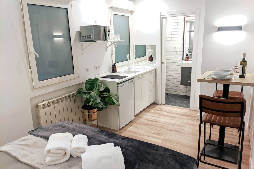 Bright and cozy studio at the very historical city center, Sol, Plaza Mayor Full equipped with Hi Speed Wifi, Air Conditioning, Central Heating, SmartTV, Fridge, Induction Kitchen, Hair Dryer, etc. Located close to Sol Metro Station You will be at the very city center but you will not ear any noise, the studio is Brand new, built with best quality soundproof windows. Terraces, cafeterias, theatres, museums…all inside the neighborhood! Connected by buses and 2 metro lines. In front of Plaza Mayor, 100m away from Sol Square, to Kings palace, to San Miguel Market, Almudena Cathedral, also close to Prado Museum and Reina Sofia Museum. The apartment is surrounded by food markets, fruit stores, etc. La Latina is an historical neighborhood, very well known by its bohemian environment and its street life, it is also very secure. Servicios y zonas comunes As the apartment is brand new, we have equipped I it with very good quality sound proof windows, new super comfortable beds, smart TV, A/C, central heating, good shower…everything to make you feel at home