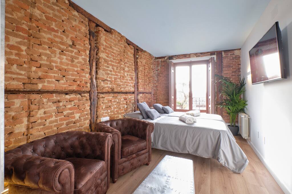 Casco histórico de Madrid, Plaza Mayor, Palacio Real, Mercado de San Miguel, Puerta del Sol, Gran via...todo en un radio de máximo 10 minutos andando, no necesitarás ningún otro transporte.