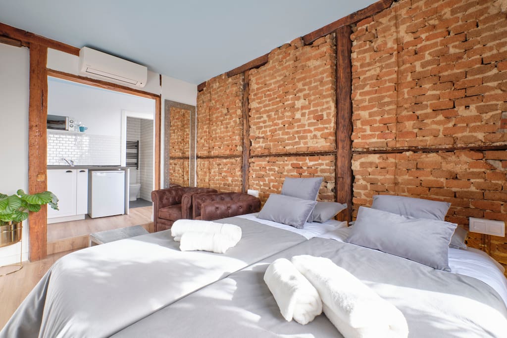 Conexión con Aeropuerto Madrid Barajas en Metro 30mins. Aprox. La estación de Metro la Latina está a 100 metros y junto a ella una parada de taxis y varias de autobuses. Para moverse por el centro de Madrid podrás hacerlo andando, no hay necesidad de coger ningún transporte.