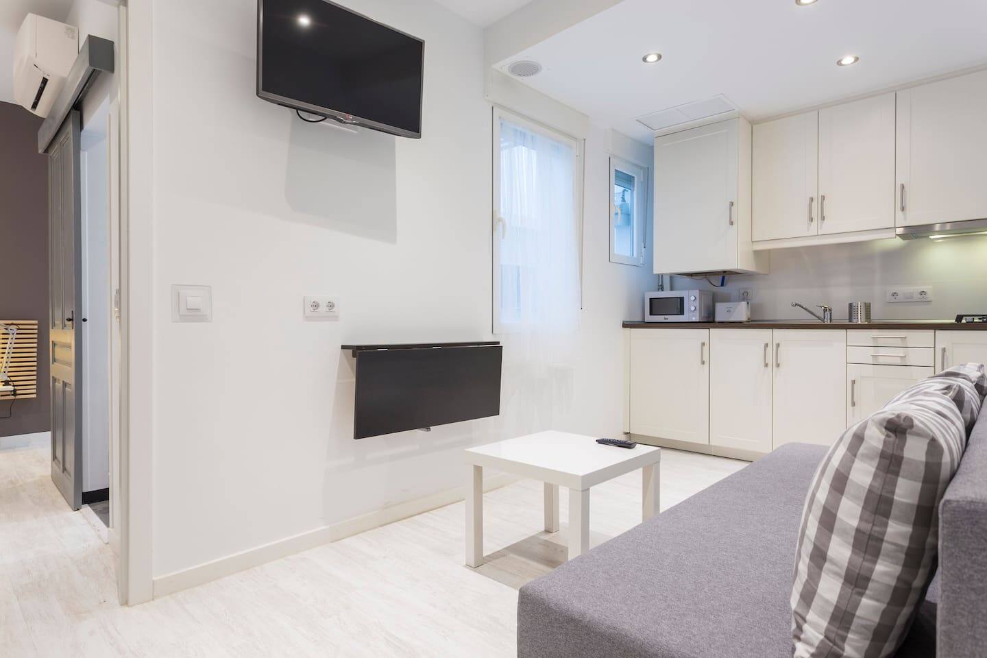 Beautifully refurbished flat in the heart of Madrid. Cosy and full of light in the historic centre. Includes high-speed Wi-Fi, air-conditioning, heating, fridge and hair-dryer. Right on Atocha Station square. Terraces, cafés, theatres and museums are all on your doorstep—you can walk to every corner of Madrid’s city centre, no other transport needed.