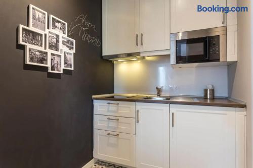 Bright at the very historical city equipped with Hi Speed Wifi, Air Conditioning, Central Heating, SmartTV, Fridge, Induction Kitchen, Hair Dryer, etc.25m2 Located in front of Atocha Station, Reina Sofia museum and Retiro ParkYou will be at the very city center but you will not ear any noise, the studio is Brand new, built with best quality soundproof , cafeterias, theatres, museums…all inside the neighborhood!