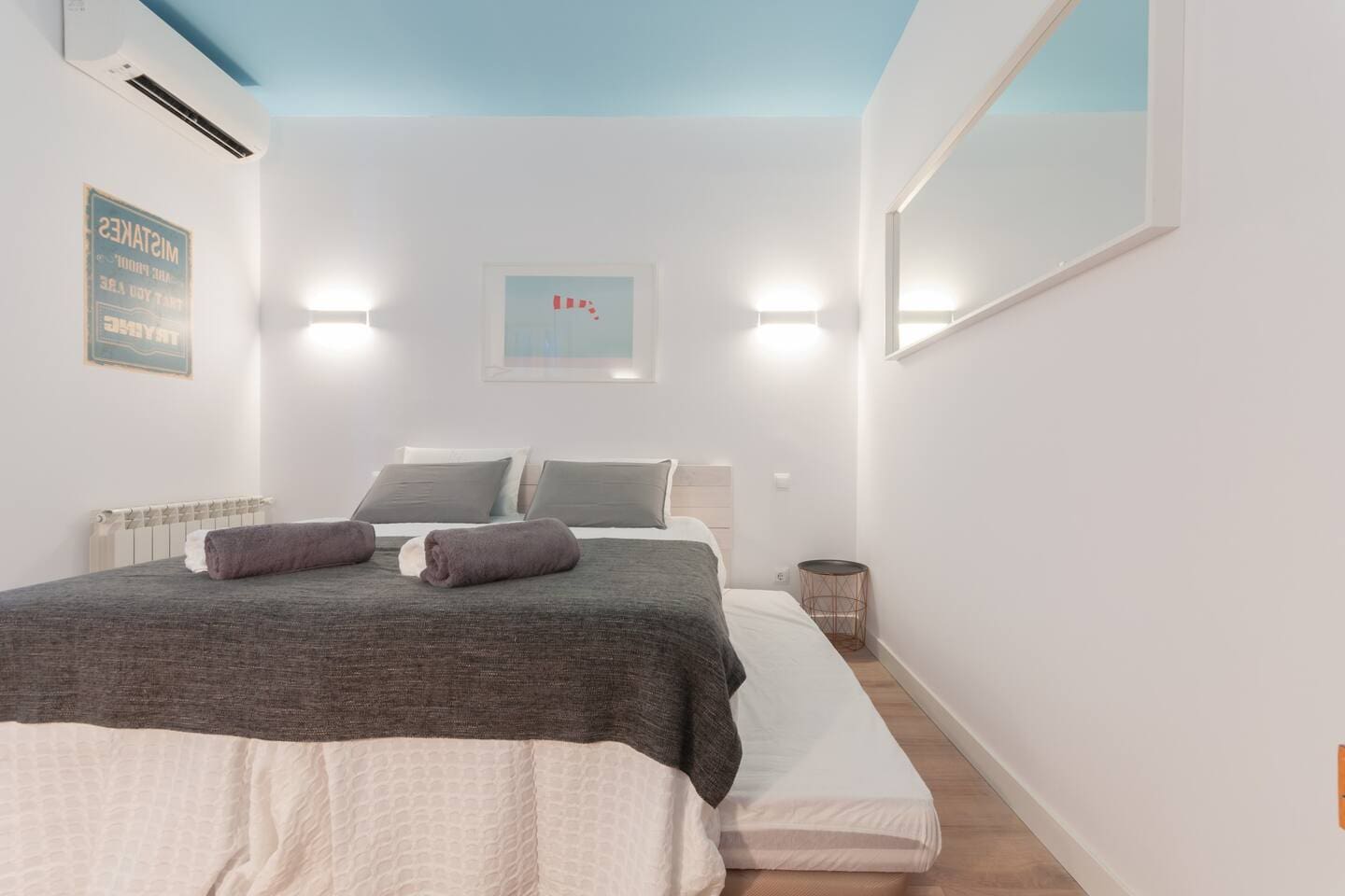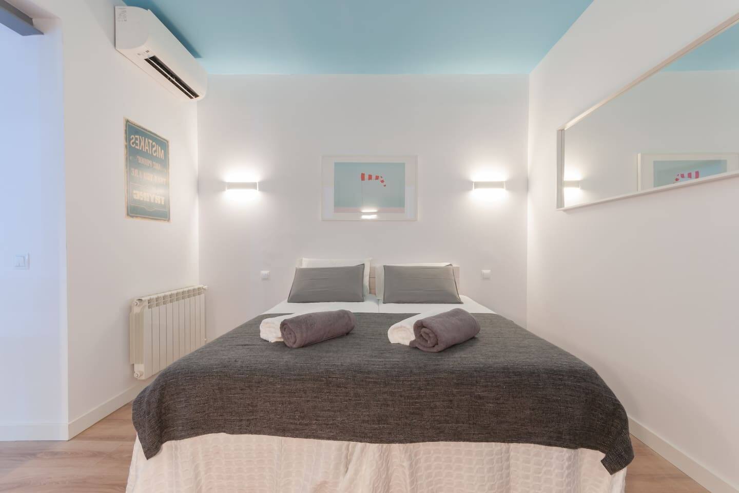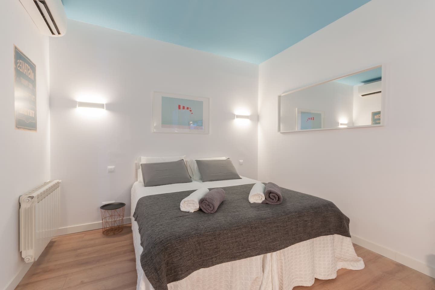 Brand new, we have equipped I it with very good quality sound proof windows, new super comfortable beds, SmartTV, A/C, central heating, good shower…everything to make you feel at home