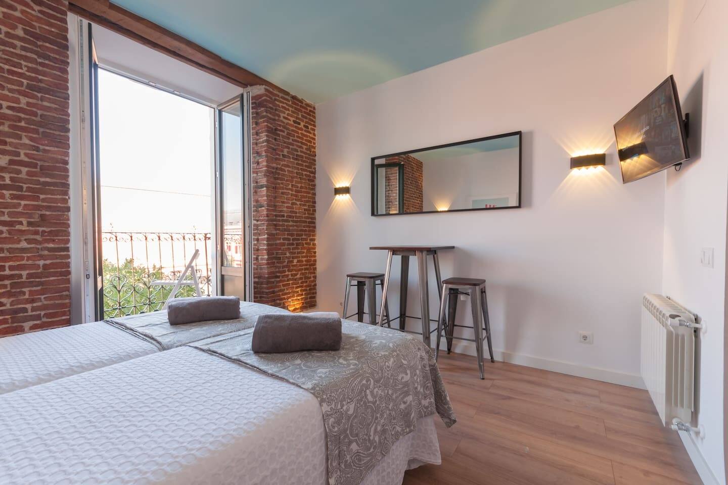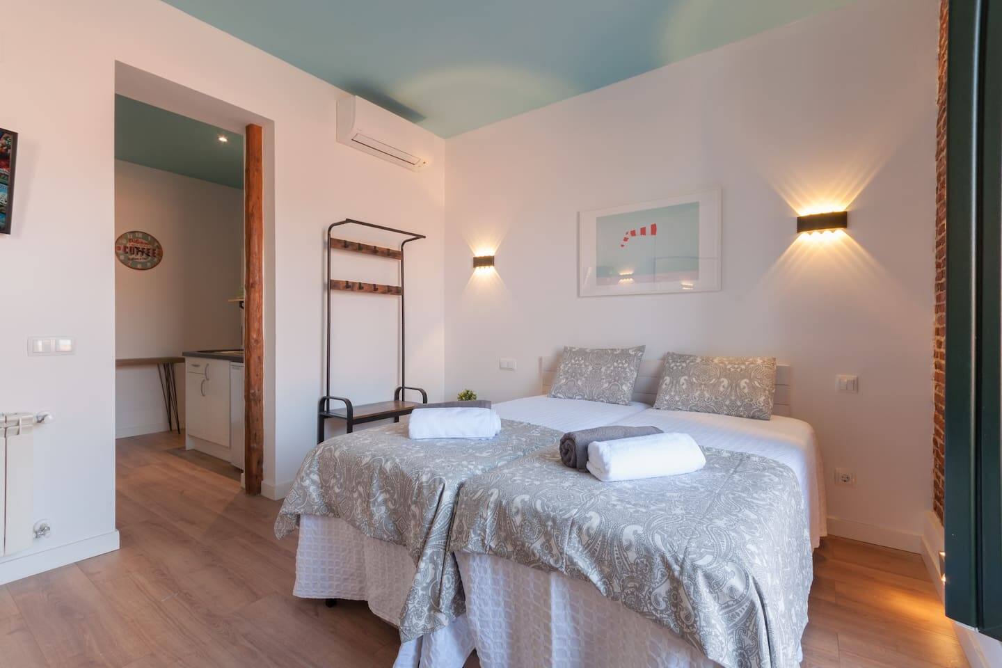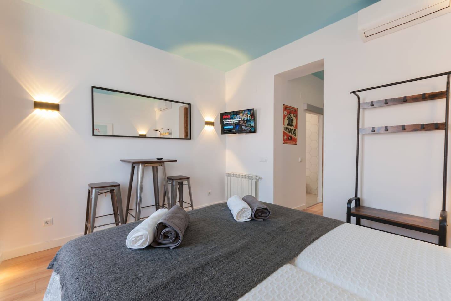 Bright and fully renewed at the very historical city center.Full equipped with Hi Speed Wifi, Air Conditioning, Central Heating, SmartTV, Fridge, Induction Kitchen, Hair Dryer, etc.25m2 Located in front of Atocha Station, Reina Sofia museum and Retiro ParkYou will be at the very city center but you will not ear any noise, the studio is Brand new, built with best quality soundproof windows.Terraces, cafeterias, theatres, museums…all inside the neighborhood!