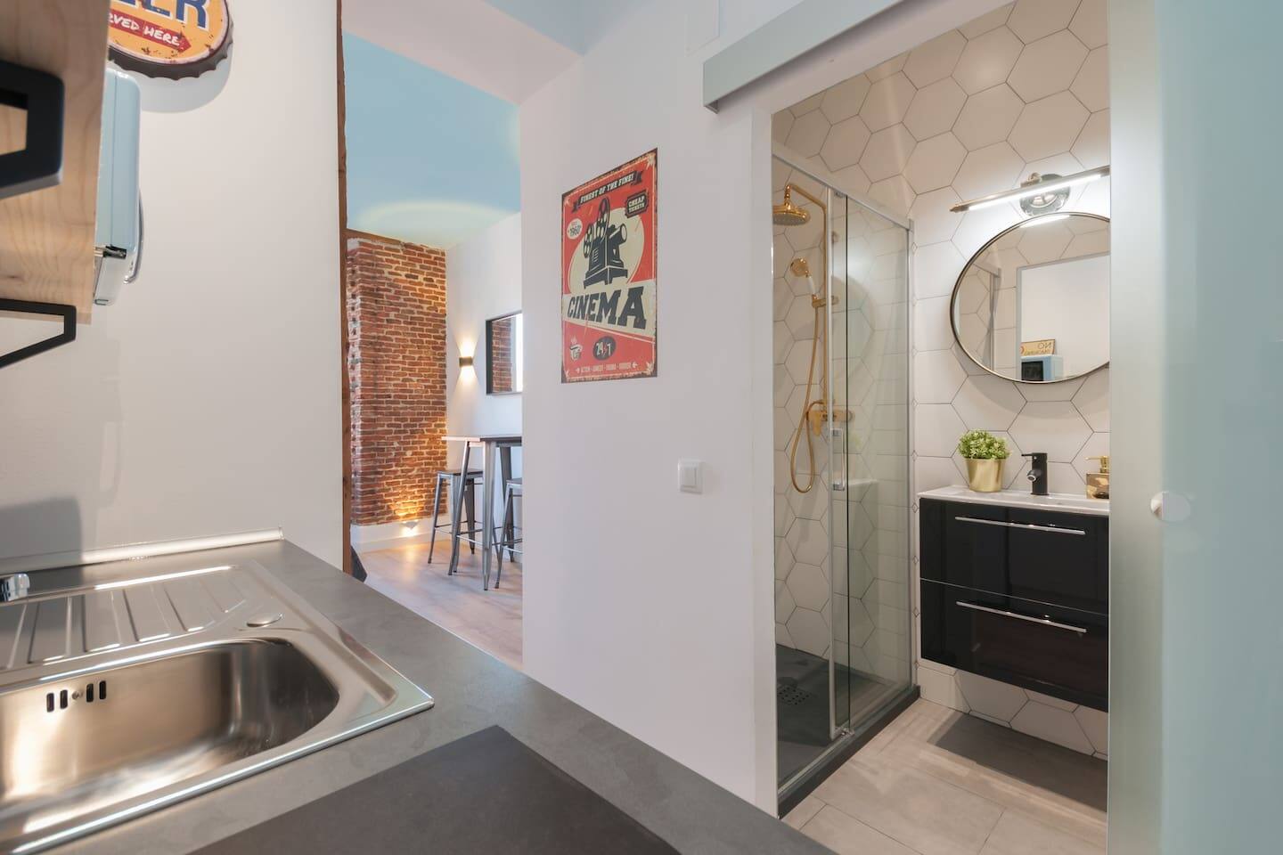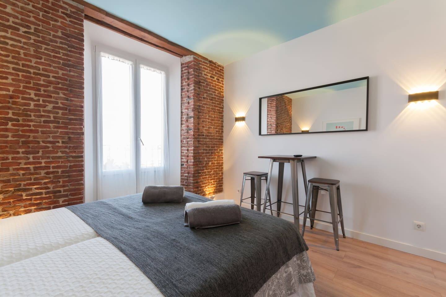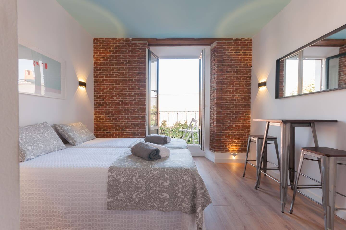 Bright and fully renewed at the very historical city center.Full equipped with Hi Speed Wifi, Air Conditioning, Central Heating, SmartTV, Fridge, Induction Kitchen, Hair Dryer, etc.25m2 Located in front of Atocha Station, Reina Sofia museum and Retiro ParkYou will be at the very city center but you will not ear any noise, the studio is Brand new, built with best quality soundproof windows.Terraces, cafeterias, theatres, museums…all inside the neighborhood!