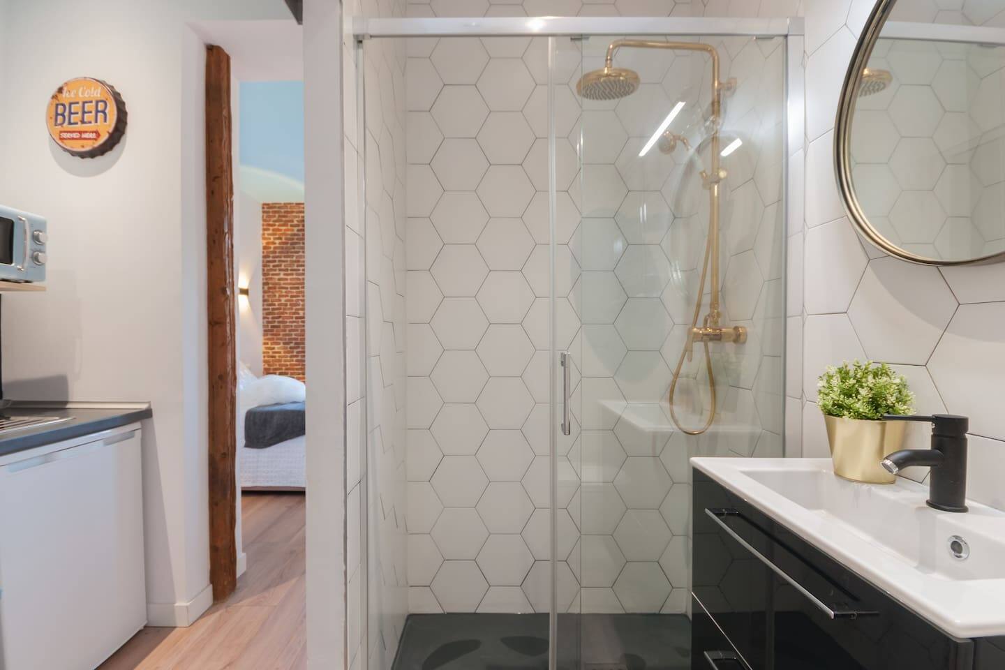 Bright and fully renewed at the very historical city center. Full equipped with Hi Speed Wifi, Air Conditioning, Central Heating, SmartTV, Fridge, Induction Kitchen, Hair Dryer, etc. Located in front of Atocha Station, Reina Sofia museum and Retiro Park You will be at the very city center but you will not ear any noise, the studio is Brand new, built with best quality soundproof windows. Terraces, cafeterias, theatres, museums…all inside the neighborhood! Connected by buses and 4 metro lines. Close to Plaza Mayor Sol Square, to Kings palace, to San Miguel Market, Almudena Cathedral, also close to Prado Musseum, Retiro Park and in front of Reina Sofia Musseum. The apartment is surrounded by food markets, fruit stores, etc. Historical neighborhood, very well known by its bohemian environment and its street life, it is also very secure. The apartment is based on a 2nd floor and the building has elevator.