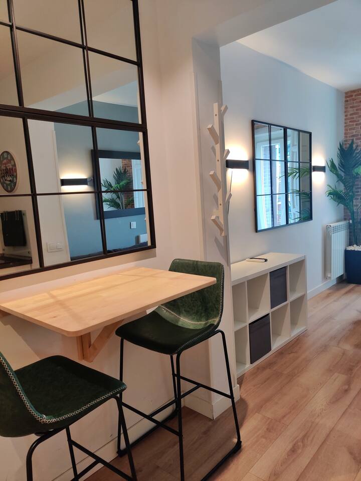 Bright and cozy at the very historical city center.Full equipped with Hi Speed Wifi, Air Conditioning, Central Heating, SmartTV, Fridge, Induction Kitchen, Hair Dryer, etc.Located at Atocha Station Square, in front of Reina Sofia musseumYou will be at the very city center but you will not ear any noise, the studio is Brand new, built with best quality soundproof windows.Terraces, cafeterias, theatres, museums…all inside the neighborhood!