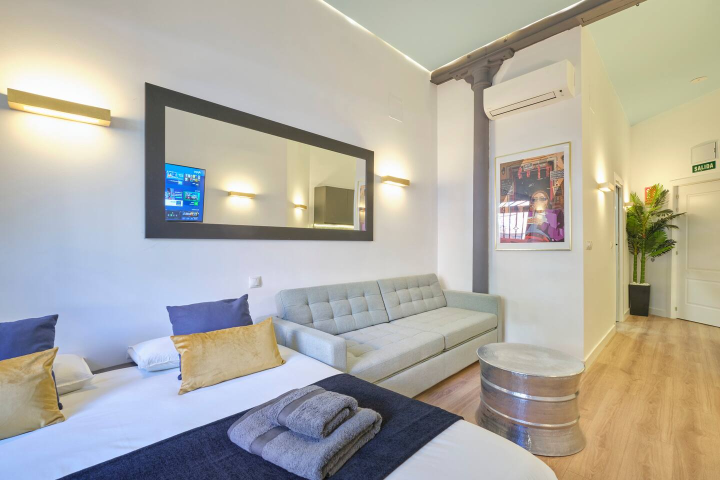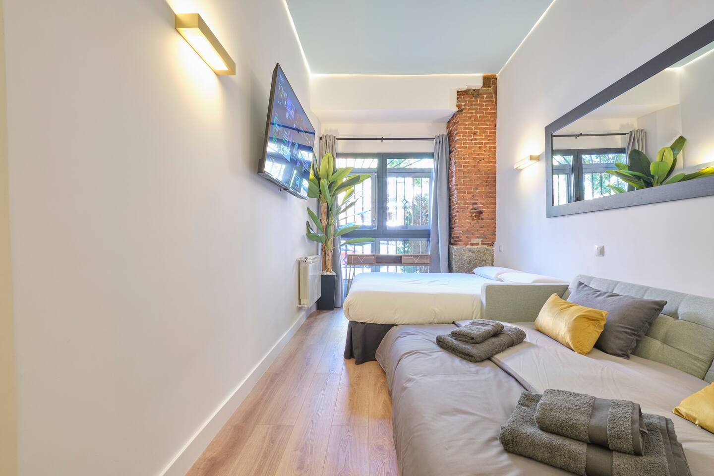 Bright and cozy studio at the very historical city center. Fully equipped with Hi Speed Wifi, Air Conditioning, Central Heating, SmartTV, Fridge, Induction Kitchen, Hair Dryer, etc. Located at 100m from Puerta de Toledo metro station Terraces, cafeterias, theatres, museums…all inside the neighborhood! Connected by buses and 2 metro lines. Close to Plaza Mayor ,Sol Square, Royal Palace, San Miguel Market, Almudena Cathedral, also close to Prado Museum and Reina Sofia Museum. La Latina is an historical neighborhood, very well known by its bohemian environment and its street life, it is also very secure.